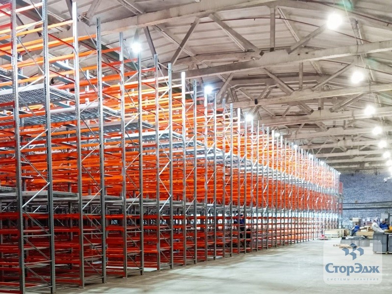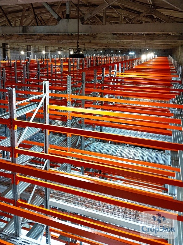 Площадь застройки составила более 900 квадратных метров. Из которых основную часть занимает полочный мезонин на паллетных рамах. А 44 м² отдано под платформенный мезонин на колоннах, служащий для организации площадок приемки и отгрузки на каждом из трех этажей. На каждом уровне перекрытий установлены блоки безопасной загрузки.